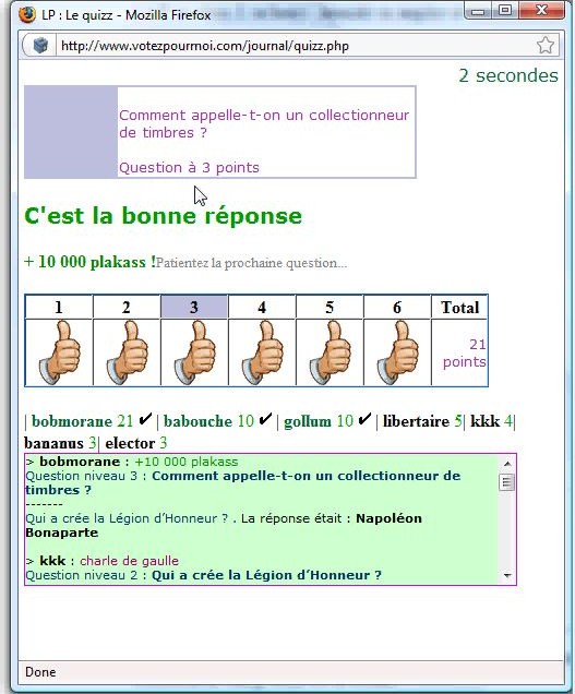 Le quizz de culture générale en 2010 (écran de victoire)